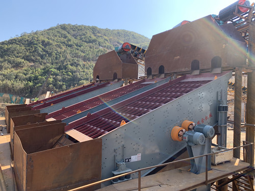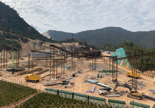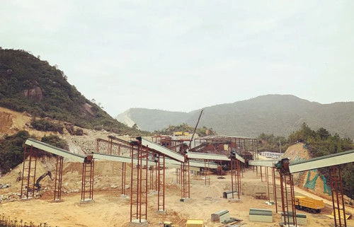 雙金機械廣東客戶時產1000噸花崗巖破碎生產線開機投產 【出料規格】:1000-1500mm 【生產能力】:1000噸/小時 【適用物料】:建筑用花崗巖
