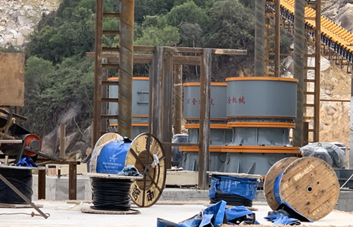 廣西客戶三臺SK.Y.1800單缸液壓圓錐機正式開機生產 【出料規格】:精品骨料 【生產能力】:800t/h 【適用物料】:片麻巖