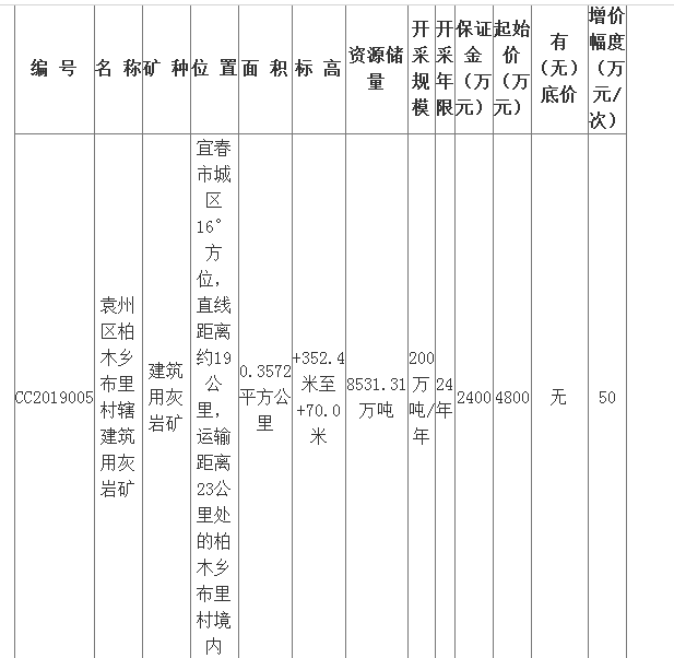 根據(jù)《江西省土地使用權(quán)和礦業(yè)權(quán)統(tǒng)一網(wǎng)上交易管理辦法》等有關(guān)規(guī)定,受宜春市自然資源局委托,宜春市土地礦產(chǎn)交易中心以網(wǎng)上拍賣方式出讓下列礦業(yè)權(quán)。