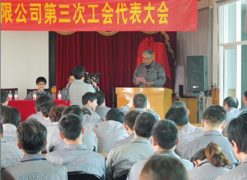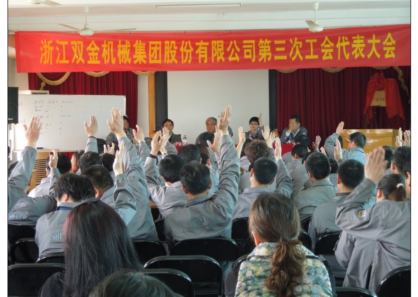 2013年4月11日下午一時,雙金集團第三次工會代表大會在西大樓二樓會議室隆重召開。會議由公司黨支部書記施金龍主持,公司董事長胡祖堯、上屆工會主席杜月春、瓶窯鎮總工會主席稽掌虎及兄弟單位工會主席和工會負責人員、公司79名代表等出席了本次會議。