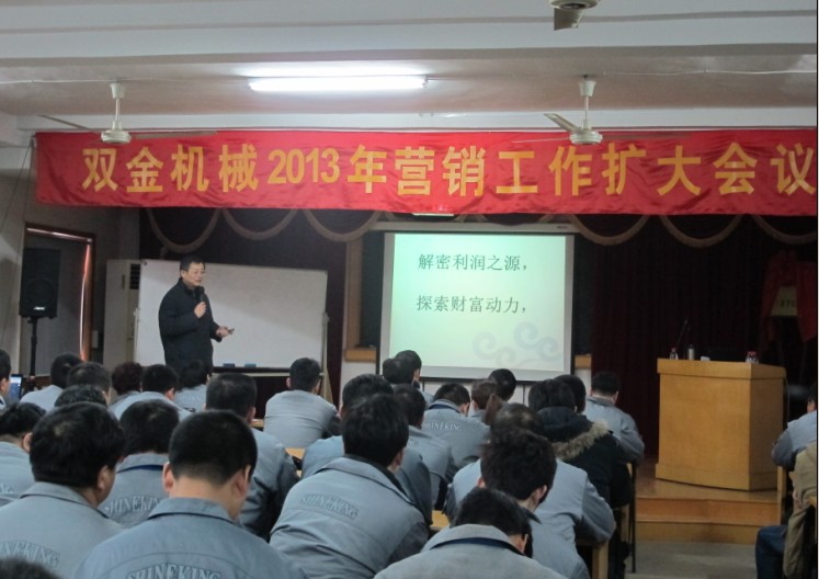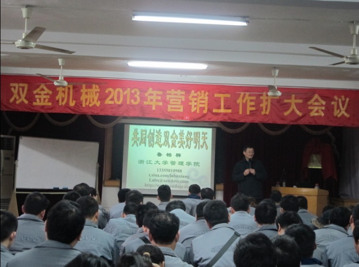 雙金集團2013年營銷工作擴大會議于2月17至18日召開,會上集團特別邀請到浙江大學管理學院魯柏祥教授為參會人員演講。魯教授以“共同創造雙金美好明天”為主題,將他的人生經驗與智慧結晶與大家分享,并通過互動問答的形式解密利潤之源,探索財富動力。他的演講生動有趣,貼合實際,引人深思。
