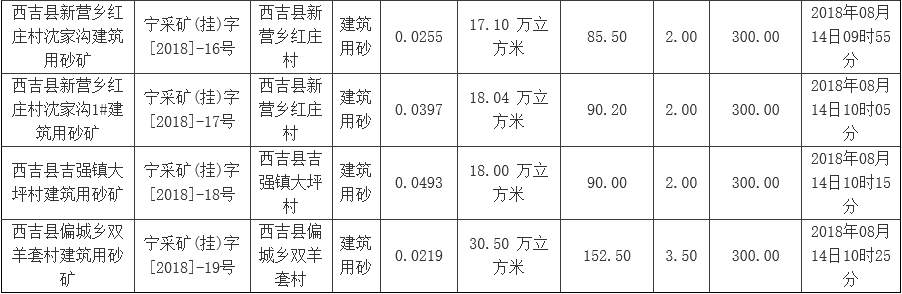 經(jīng)西吉縣人民政府批準(zhǔn),西吉縣國(guó)土資源局委托寧夏公共資源交易服務(wù)中心,以網(wǎng)上掛牌交易方式公開出讓寧夏西吉縣9宗建筑用砂礦采礦權(quán)。現(xiàn)將有關(guān)事項(xiàng)公告如下: