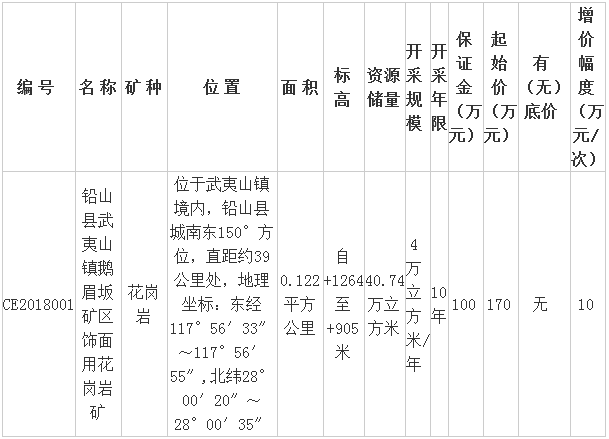 根據《江西省土地使用權和礦業權統一網上交易管理辦法》等有關規定,受鉛山縣國土資源局委托,上饒市國土資源市場交易管理所以網上拍賣方式出讓下列礦業權。