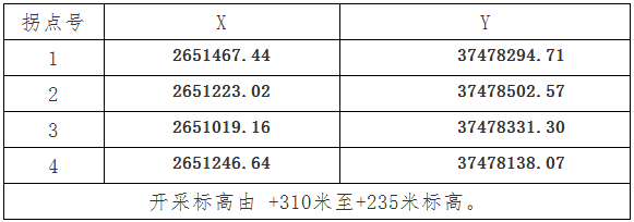 10、出讓范圍坐標及開采標高(西安80坐標)為: