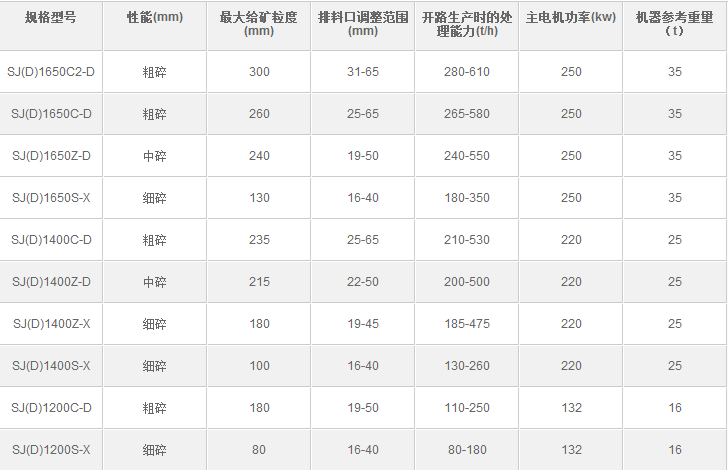(圖為雙金多缸液壓式圓錐破碎機技術參數)