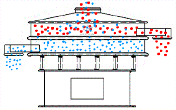 工作原理:振動篩分機是利用激振器(偏心塊或偏心軸)產生的激振力,使篩體沿激振力方向作做周期性往復振動,物料在篩面上圓周跳動,通過不同的篩孔把不同規格的物料分級規整到所要求的篩面,匯集后輸送到指定區域,以達到分級或脫介目的。通過調整偏心塊的重量可以調整振幅。